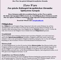 Dieses Dokument enthält alle wesentlichen Regeln und alle wichtigen Tabellen um Hero Wars zu spielen.