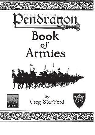 Fourteen Arthurian Armies, Period by Period, from Uther to Camlann. Also, notes on which enemy table to use for every battle in GPC, some of which have their own special muster. Also including many special units ready to use: mercenaries, Round Table knights by Period, weird troops (elephants! chariots!), leaders (general and specific) and more.